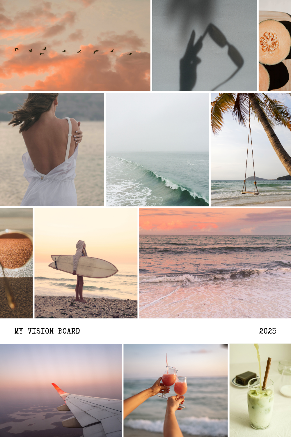 If you’re drawn to the beach, add images of waves crashing on the shore or seashells scattered on the sand.