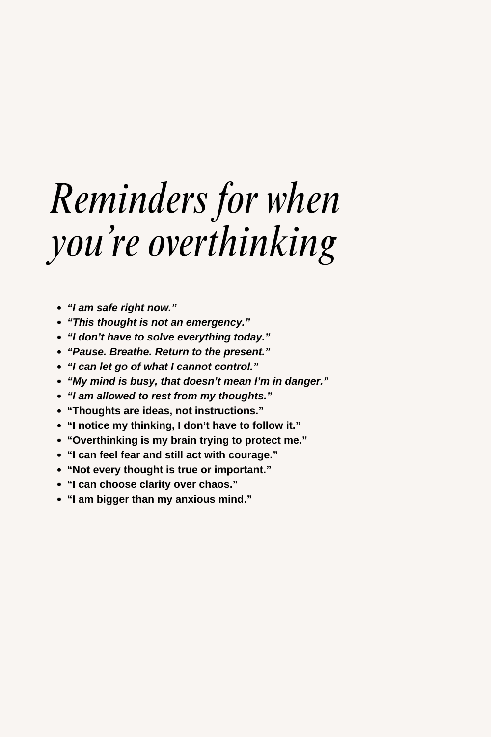 Once you learn to watch your thoughts instead of chasing them, overthinking stops controlling your life. You start: