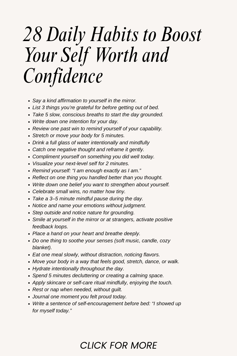 Finally, self-worth shows up in how you carry yourself every day. It’s the confidence in speaking your truth, the energy you put into your goals, and the joy you allow yourself to experience.